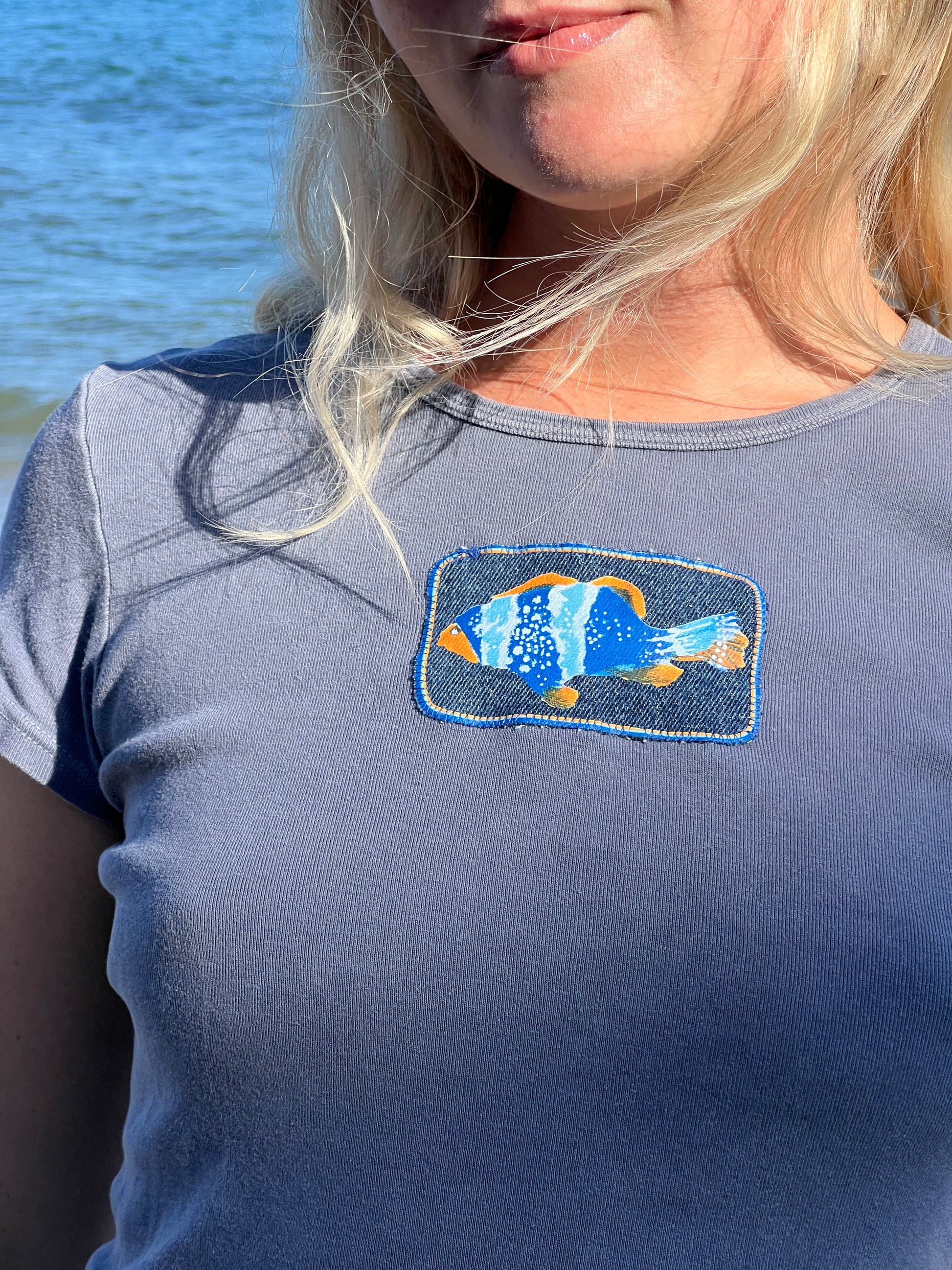 These fish patches are handcrafted from reclaimed denim, giving old jeans a second life. Because each patch is cut from different pairs of jeans, expect slight color variations from the listing photo.