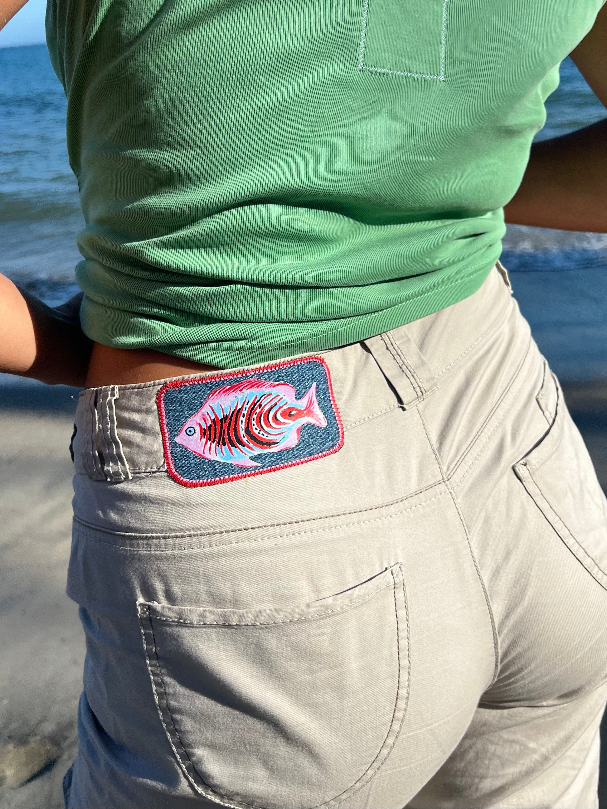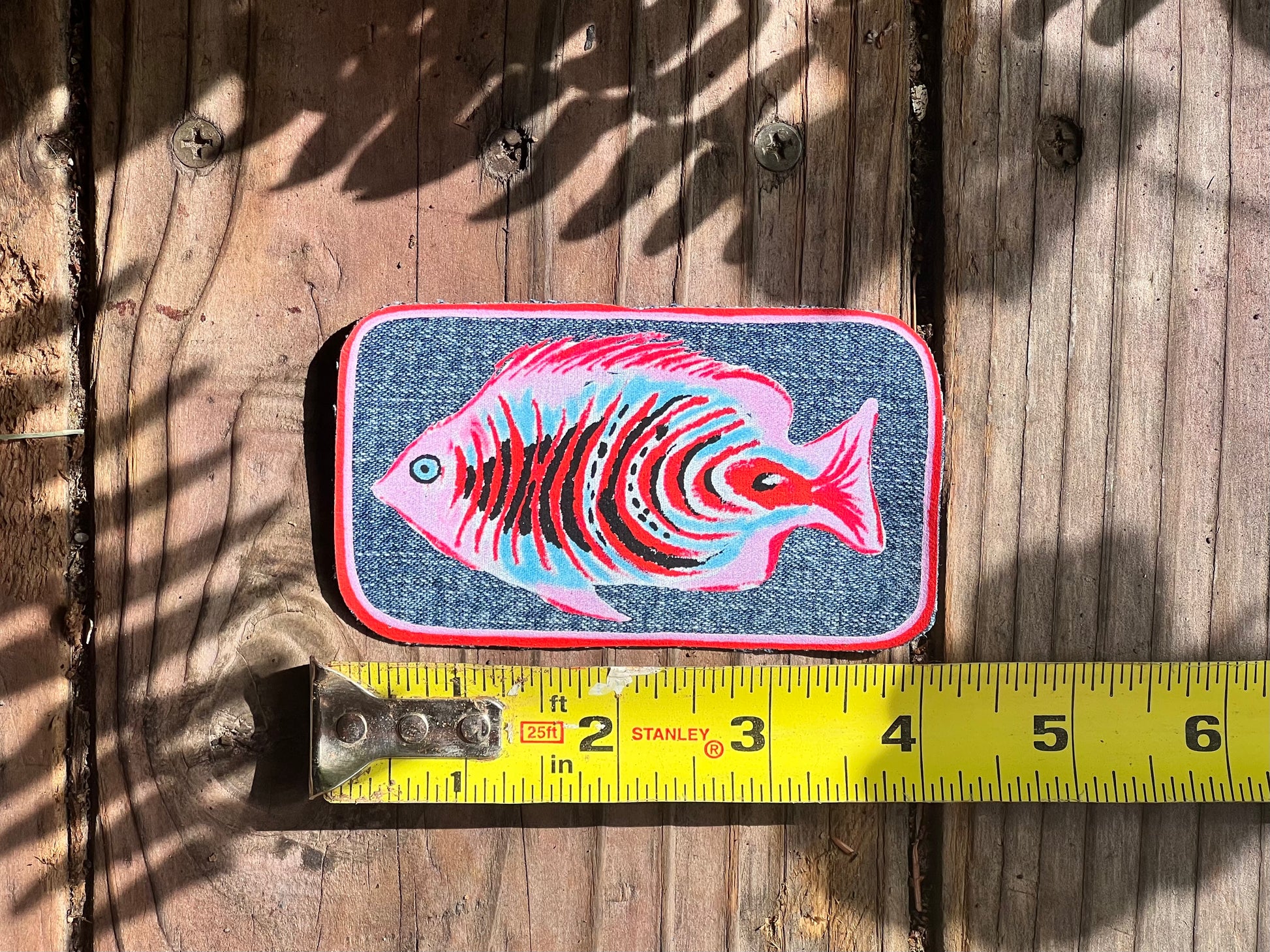 5 out of 5 stars! Firstly, upcycled. AMAZING! We friggin LOVE sustainability. Secondly, fish. As a Pisces who lives near the beach in Florida…how could I not!? Thirdly, hand painted….this is WEARBALE art!! Are you freaking kidding me?!?! 1000% YES! Fourthly, quality. These patches hold up my babes! I tried to make one on my own, cuz artist and all, and my paint sucked..rough like sandpaper, total garbage. (Still using its cute) but the paint on these patches is so smooth and durable. So not washing off! And lastly, I mean friggin awesome content and customer service. Like A+ all around.